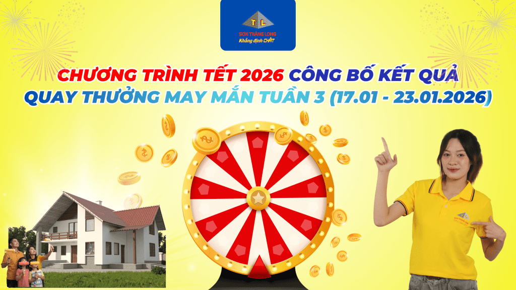 Trong khuôn khổ chương trình khuyến mại Tết 2026, Sơn Thăng Long trân trọng thông báo kết quả quay thưởng Tuần 3 (từ ngày 17/01 đến 23/01/2026) và xin gửi lời chúc mừng tới khách hàng may mắn đã trúng giải.
