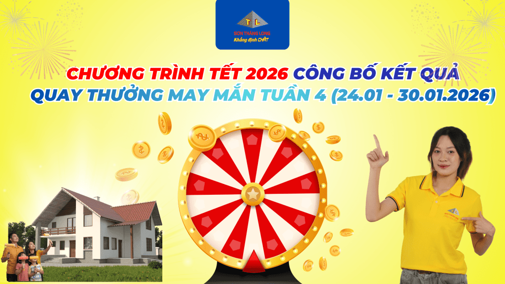 Trong khuôn khổ chương trình khuyến mại Tết 2026, Sơn Thăng Long trân trọng thông báo kết quả quay thưởng Tuần 4 (từ ngày 24/01 đến 30/01/2026) và xin gửi lời chúc mừng tới khách hàng may mắn đã trúng giải.